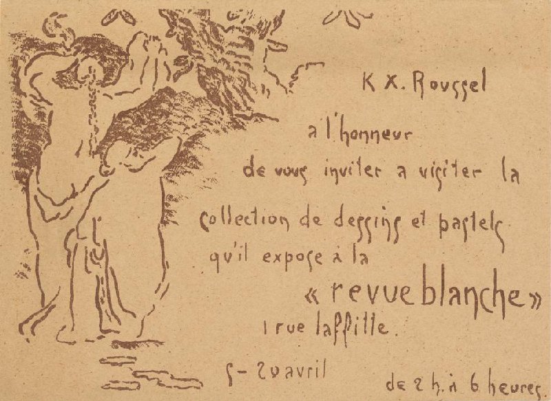- K X. Roussel a l'honneur de vous inviter a visiter la collection de dessins et pastels qu'il expose à la "revue blanche" 1 rue laffitte 9-20 avril de 2 h. à 6 heures. by Roussel, Ker-Xavier