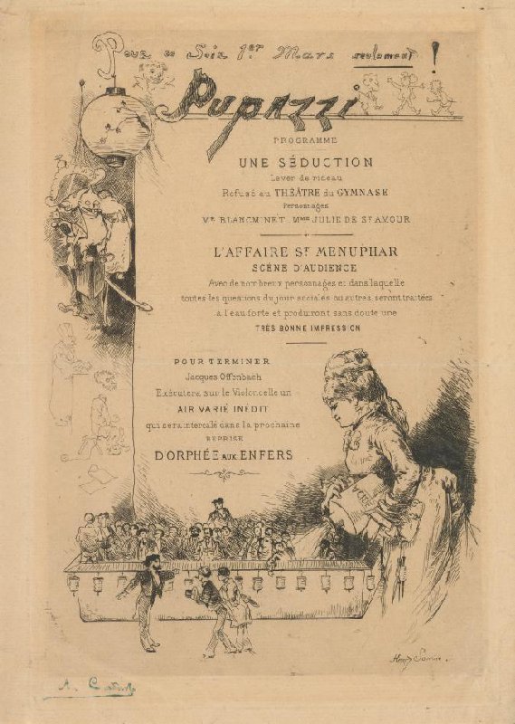 Theatre programme for Une séduction and L'affaire St. Menuphar (Théâtre de Pupazzi, 1 March 1882)