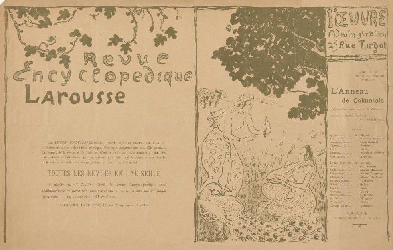 Theatre programme for L'Anneau de Çakuntala by Kalidasa (Théâtre de l'Oeuvre, 10 December 1895) and an advertisement for the journal Revue encyclopédique larousse