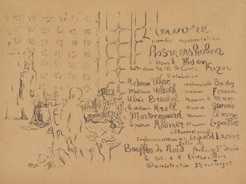 - L'OEUVRE première representation ROSMERSHOLM d'Hendrik Ibsen [vertaler] [rolverdeling] à 8 heures et quart [aankondiging voordracht] Salle des Bouffes du Nord [adres] le Oct, a 8 heures du soir [adres] by Vuillard, Edouard