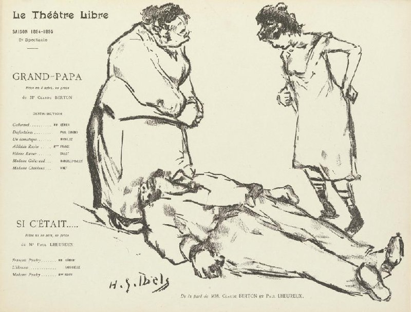 - Le Théâtre Libre saison 1894-1895 8e Spectacle GRAND-PAPA Pièce en 3 actes, en prose de Mr Claude BERTON [rolverdeling] SI C'ÉTAIT..... Pièce en un acte, en prose de Mr Paul LHEUREUX [rolverdeling] De la part de MM. Claude BERTON et Paul LHEUREUX.