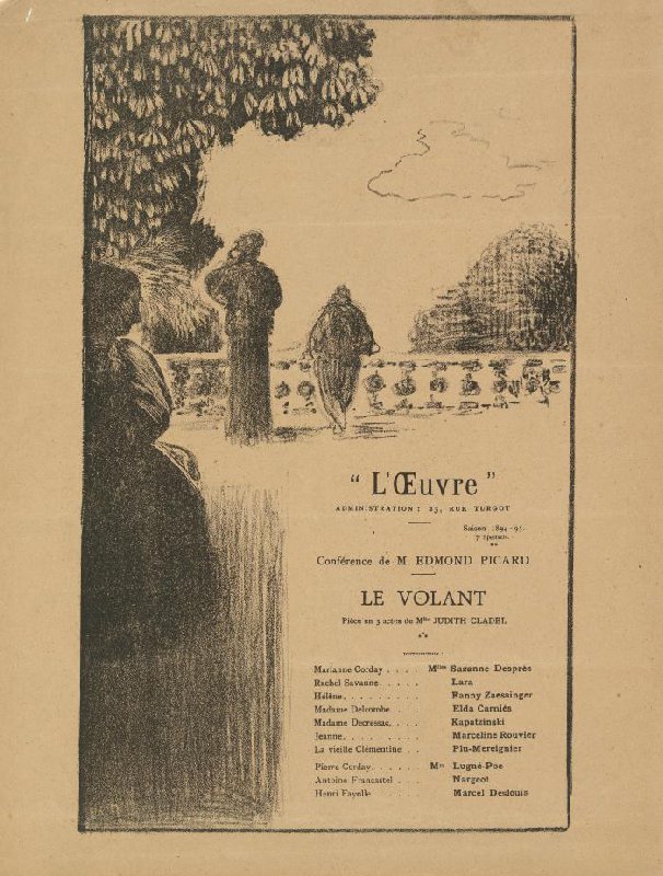 - "L'OEuvre " [adres] Saison 1894-95 7e spectacle ** [voordracht] LE VOLANT Pièce en 3 actes de Mlle JUDITH CLADEL [rolverdeling]