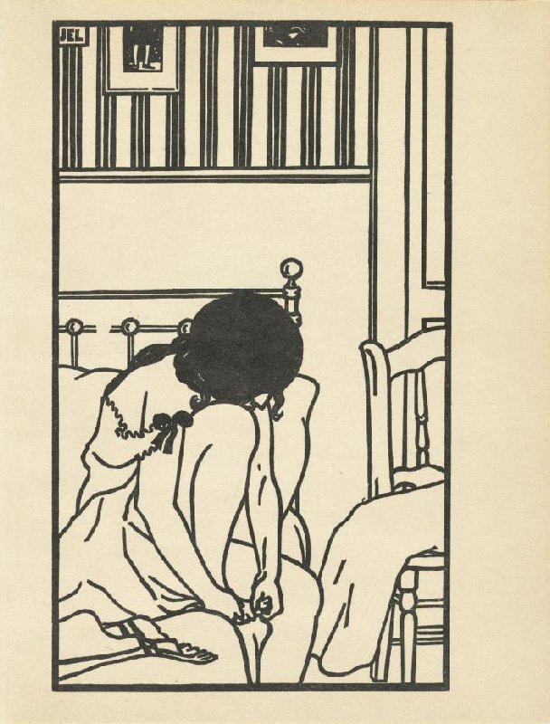 A Woman Inspecting a Corn in Front of a Striped Wallpaper (Le cor au papier peint rayé) from the journal Hyperion (1908)