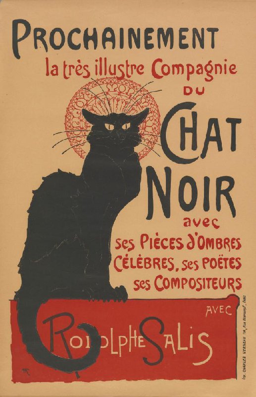 - PROCHAINEMENT la très illustre Compagnie du CHAT NOIR avec ses PIÈCES d'OMBRES CÉLÈBRES, ses POËTES ses COMPOSITEURS AVEC RODOLPHE SALIS by Steinlen, Théophile Alexandre
