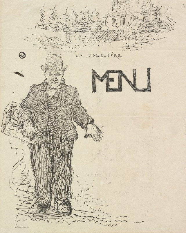 Trial proof of Peasant with a Basket (Paysan au panier), menu for a family dinner at La Jozelière
