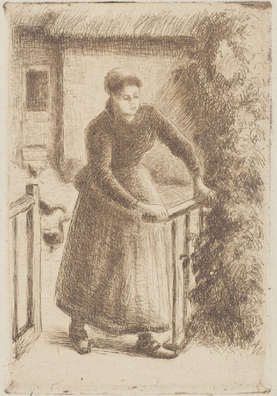 - n º 1 bis 8e état femme à la barrière imp par C. P. by Pissarro, Camille , in werkelijkheid is dit de 9e staat