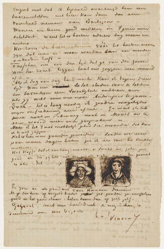 Brief van Vincent van Gogh aan Theo van Gogh met schetsen van Kop van een vrouw en Kop van een vrouw (verso)