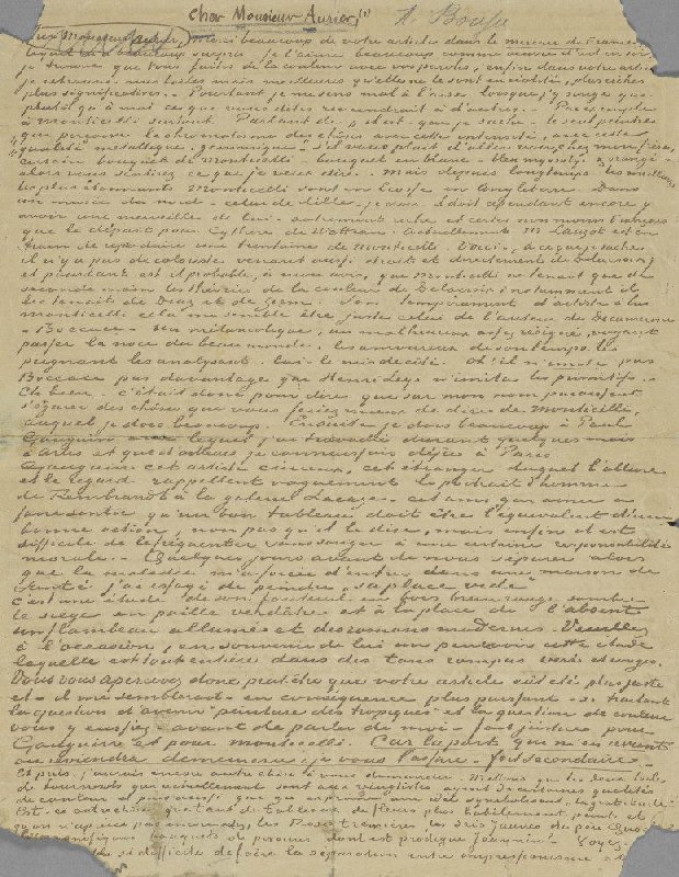Brief van Vincent van Gogh aan Albert Aurier (recto)