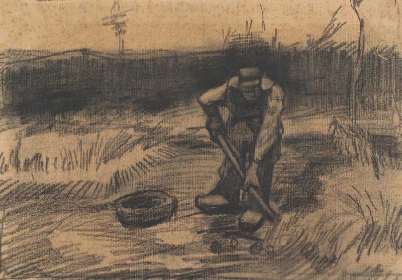 Aardappelrooiende boer