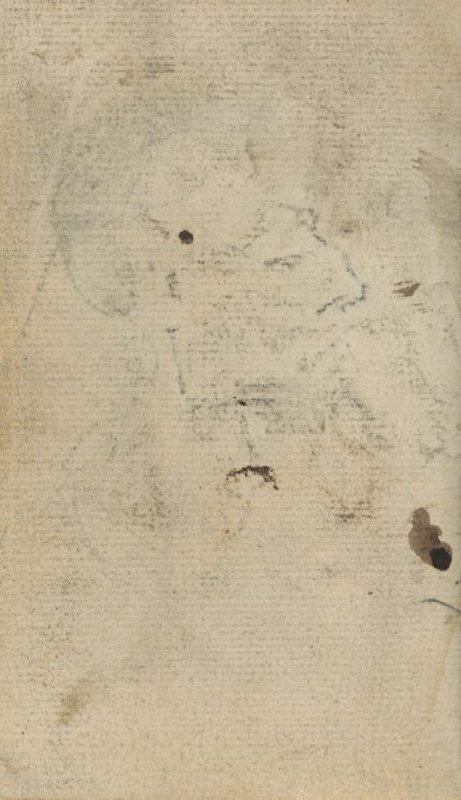 Blanco pagina met doorslag van 'Portret van een man' en bruine inktvlekken