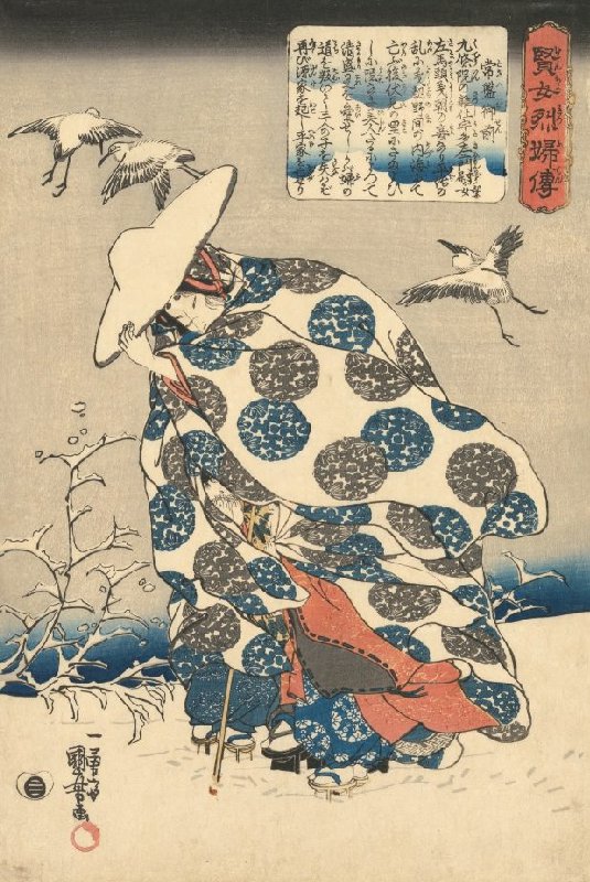 Tokiwa Gozen, uit de prentenserie Legendes van wijze en kuise vrouwen