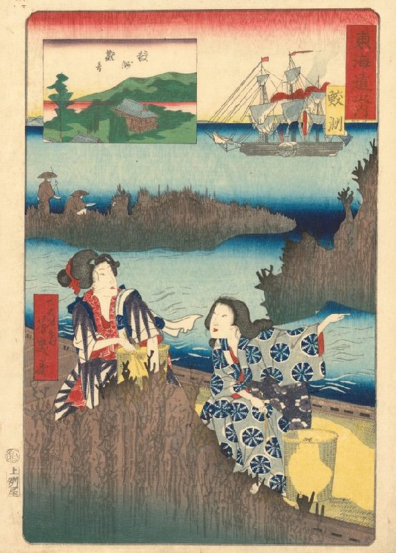 Samezu: De Kannon van Samezu, uit de prentenserie Gezichten op beroemde plaatsen langs de Tōkaidō (hier genoemd: De Tōkaidō)