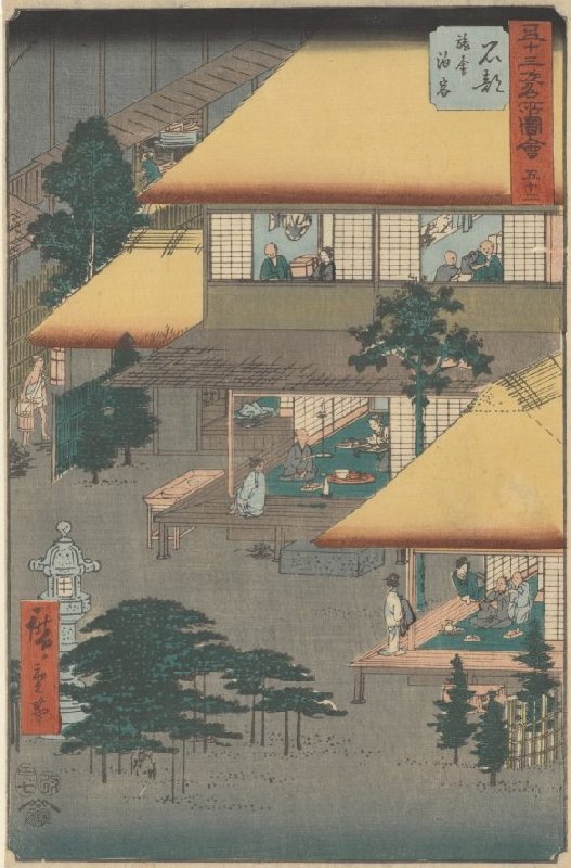Ishibe: Gasten in het logement, nr. 52 uit de prentenserie Verzameling afbeeldingen van beroemde plaatsen bij de drieënvijftig stations [langs de Tōkaidō]