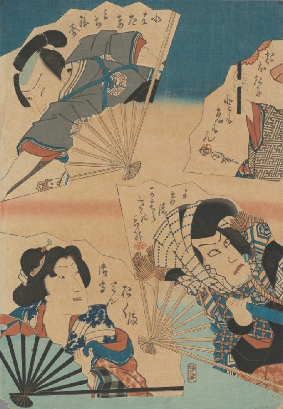Waaiers met portretten van kabuki acteurs, vierde blad van een pentaptiek