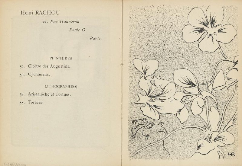 - Henri RACHOU 22, Rue Ganneron Paris. PEINTURES [cat.nr. 52-53] LITHOGRAPHIES [cat.nr. 54-55]