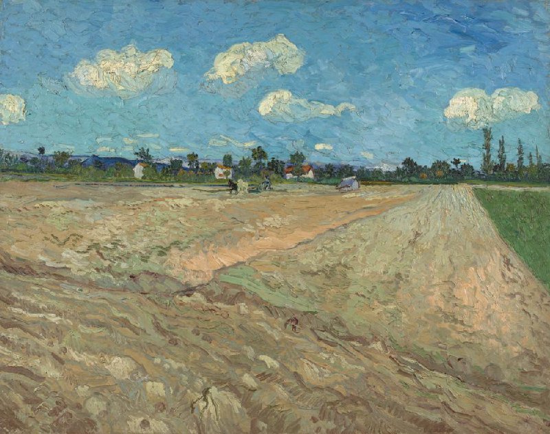 Van Gogh bracht de verf hier dik aan, in alle richtingen, om de omgewoelde aardkluiten te schilderen. Hij was zelf behoorlijk tevreden over dit landschap. Aan zijn broer Theo schreef hij dat die het ook wel mooi zou vinden, omdat het ‘rustiger was dan andere doeken’. Hij hoopte dat het daardoor ook makkelijker zou verkopen. Maar dat is nooit gebeurd.