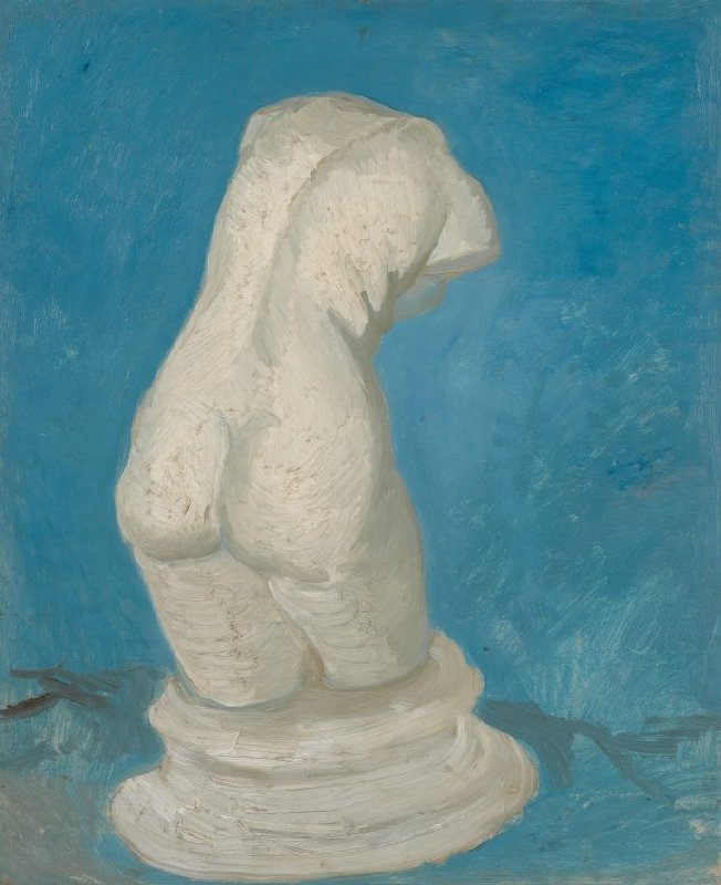 Van Gogh pakte altijd alles grondig aan. Dus toen hij besloot om te oefenen met het naschilderen van beeldjes naar antieke voorbeelden maakte hij meteen een hele serie. Hij bezat maar liefst elf van dit soort gipsmodellen. Deze torso van Venus schilderde hij vijf keer, vanuit verschillende gezichtspunten.