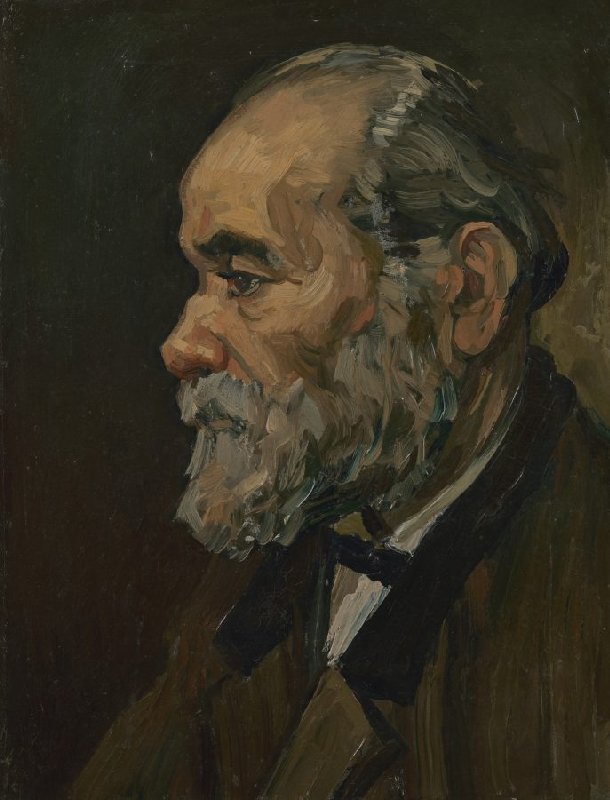 Van Gogh schilderde deze man in Antwerpen, waar hij van eind november 1885 tot eind februari 1886 woonde. Het is een mooie kop – dat vond van Gogh zelf ook: ‘Ik heb voor morgen afspraak met een prachtigen ouden man – zal hij komen???’, schreef hij aan Theo.