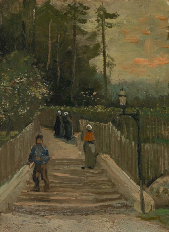 Dit is een van de eerste schilderijen die Van Gogh in Parijs maakte. Hij maakte het buiten, waarschijnlijk op de heuvel van Montmartre. Daarvan was indertijd nog maar één kant bebouwd. De precieze locatie is nu niet meer te achterhalen.
