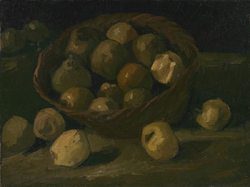 Mand met appels is een van de vele stillevens met appels en aardappels die Van Gogh in het najaar van 1885 maakte.
