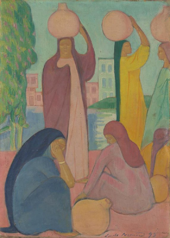 Vrouwen aan de waterkant, met kruiken