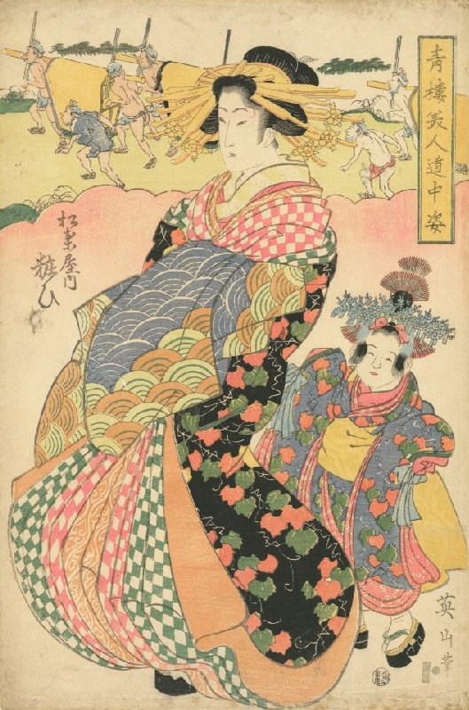 De courtisane Yosooi van het huis Matsuba, uit de prentenserie Parade van schoonheden uit de amusementswijk