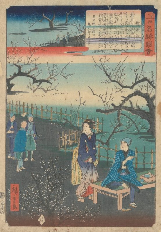 Residentie met de pruimenbomen, uit de prentenserie Verzameling afbeeldingen van beroemde gezichten op Edo
