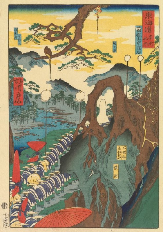 De schaduwrots in de bergen bij Hakone, uit de prentenserie Gezichten op beroemde plaatsen langs de Tōkaidō (hier genoemd: Beroemde plaatsen langs de Tōkaidō)