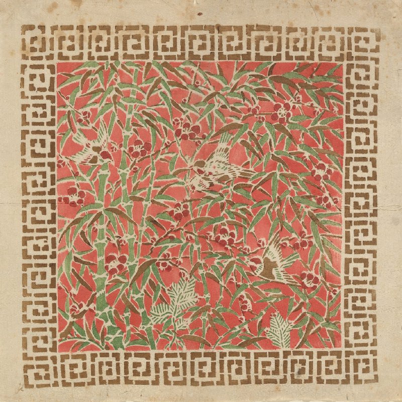 stencil prent geperst tot crepon, 42 cm x 42 cm
