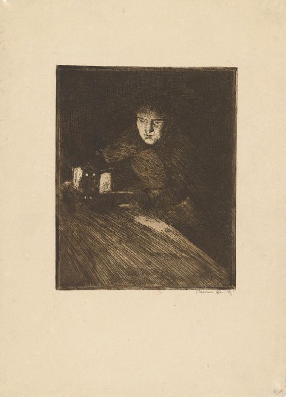 ets en drogenaald in bruin op vergépapier, 37.9 cm x 27.5 cm