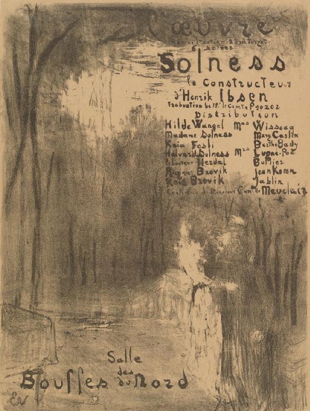 - L'OEUVRE [adres] 6 soiree SOLNESS le Constructeur d'Hendrik Ibsen [vertaler] [rolverdeling] [aankondiging voordracht] Salle des Bouffes du Nord door Vuillard, Edouard