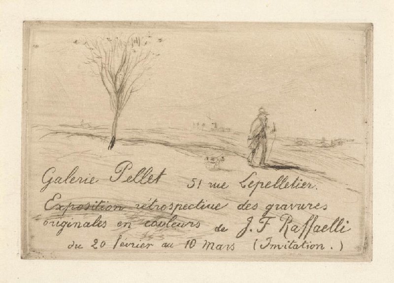 - Galerie Pellet 51 rue Lepelletier. Exposition rétrospective des gravures originales en couleurs de J.F Raffaelli du 20 février au 10 Mars (Invitation.) door Raffaëlli, Jean-François